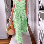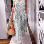 Women's V-Neck Maxi Dress with Animal Print and Relaxed Fit