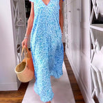 This women's v-neck maxi dress features a striking animal print and a flowing silhouette perfect for everyday chic. Its relaxed fit ensures comfort while making a statement. Pair it with sneakers or sandals for a versatile summer outfit.
