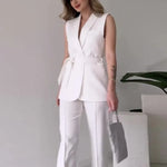 - Tailored Suit Set – A chic, sleeveless alternative to traditional suiting.
