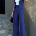 Women’s Tailored Two Piece Suit Set with Sleeveless Vest and Wide-Leg Trousers