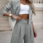 Women's Chic Two-Piece Set with Tailored Blazer and Wide-Leg Pants