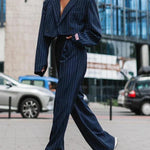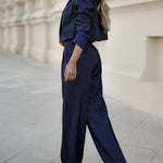 Step out in style with this chic two-piece set, featuring a tailored blazer paired with wide-leg pants. Perfect for both professional and casual settings, this versatile set offers comfort, elegance, and a modern silhouette. Whether dressing up for a meeting or going for a relaxed evening look, this ensemble is a must-have for your wardrobe.