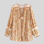 Bring a touch of boho charm to your outfits with this women's loose fit floral blouse featuring a flowy long sleeve design and button-up front. Perfect for casual looks and everyday styling, this blouse pairs beautifully with jeans or skirts. An easy way to elevate your wardrobe.