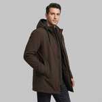 Abrigo Acolchado de Largo Medio para Hombre con Capucha y Cierre de Cremallera Moderno
