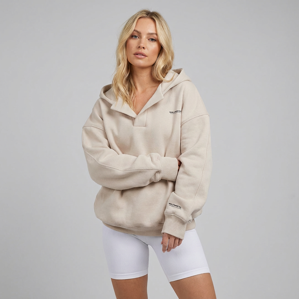 Esta sudadera oversize para mujer combina la comodidad informal con un diseño moderno y femenino. El escote abierto en forma de V le da un toque extra de estilo, convirtiendo una prenda relajada en una fácil de integrar en looks urbanos y actuales.
