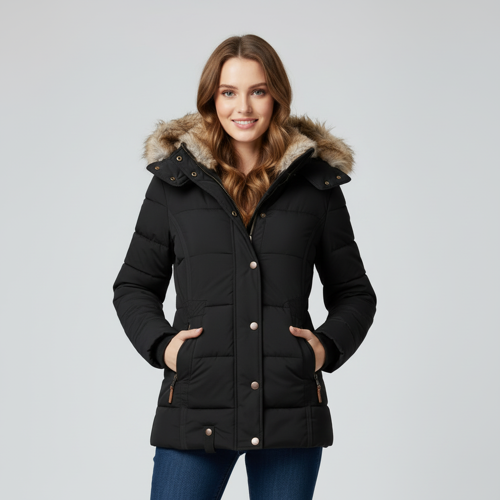 Chaqueta acolchada para mujer con capucha y diseño ajustado