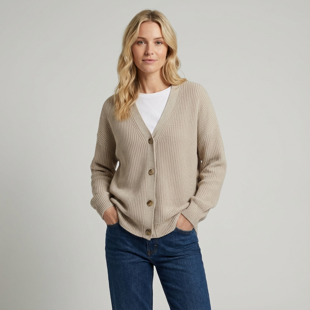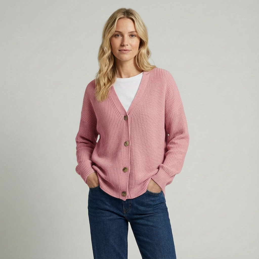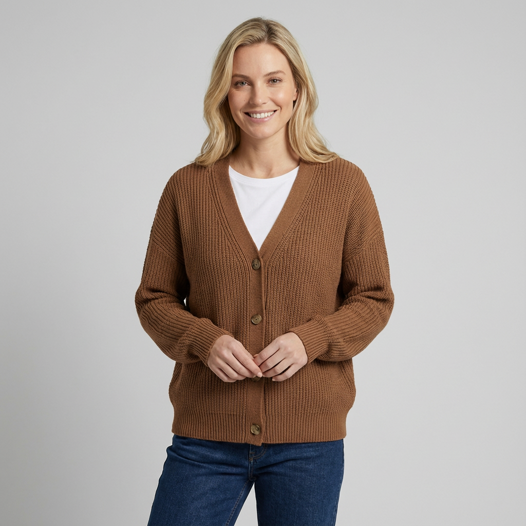 Cárdigan oversize para mujer con botones y textura de punto acanalado